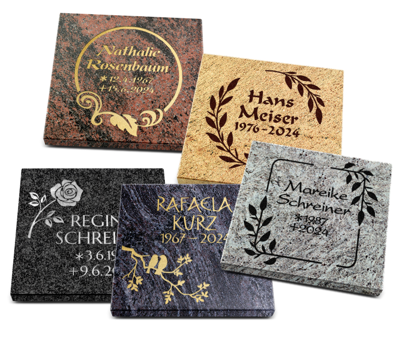 Sie suchen nach dem besonderen, schönen Rasengrabstein für einen einen geliebten Menschen: MEMORUM-Grabmale ist der größte Online – Anbieter von günstigen Sandstrahl gravierten modernen Urnengrabsteinen und Grabeinfassungen bzw. Grabsteine für Ihr Rasengrab aus Naturstein. Wir arbeiten mit Steinmetzen in ganz Deutschland zusammen – sogar viele Bestatter gehören zu unserem Kundenstamm, Bestatter die dann unsere Rasengrabsteine beim Trauerfall Ihren Kunden – Beisetzung gemeinsam mit einer Grabeinfassung von uns als Komplettpaket anbieten können. MEMORUM ist ein Steinmetz Meisterbetrieb, mit 3 Bildhauermeistern, unser Qualitätsanspruch setzt Maßstäbe, besuchen Sie unser Vielfältiges Angebot an Rasengrabplatten für Ihr Rasengrab/Wiesengrab. Auch für Ihr großes Familiengrab wenn später eine Urne zusätzlich beigesetzt wurde, und Sie nicht möchten das der Rasengrabplatten für die zusätzliche Schrift wieder abgebaut werden muss, bietet sich eine Rasengrabplatte von MEMORUM perfekt an. Der Grabstein wird einfach nur in die Erde etwas schräg gelegt, und stellt dann eine würdevolle Grabstätte für Ihren geliebten Menschen dar. Bei uns zählt Qualität. Der günstige Preis resultiert aus der standardisierten Beschriftungstechnik von ausgewählten Schriften, umgesetzt in dauerhafter Sandstrahltechnik oder hochwertigen Metallguss Inschriften. Mit unseren Produkten entscheiden Sie sich für stilsichere und dauerhafte Grabgestaltungen vom Meisterbetrieb, die rationell gefertigt und deshalb so überraschend günstig sind.